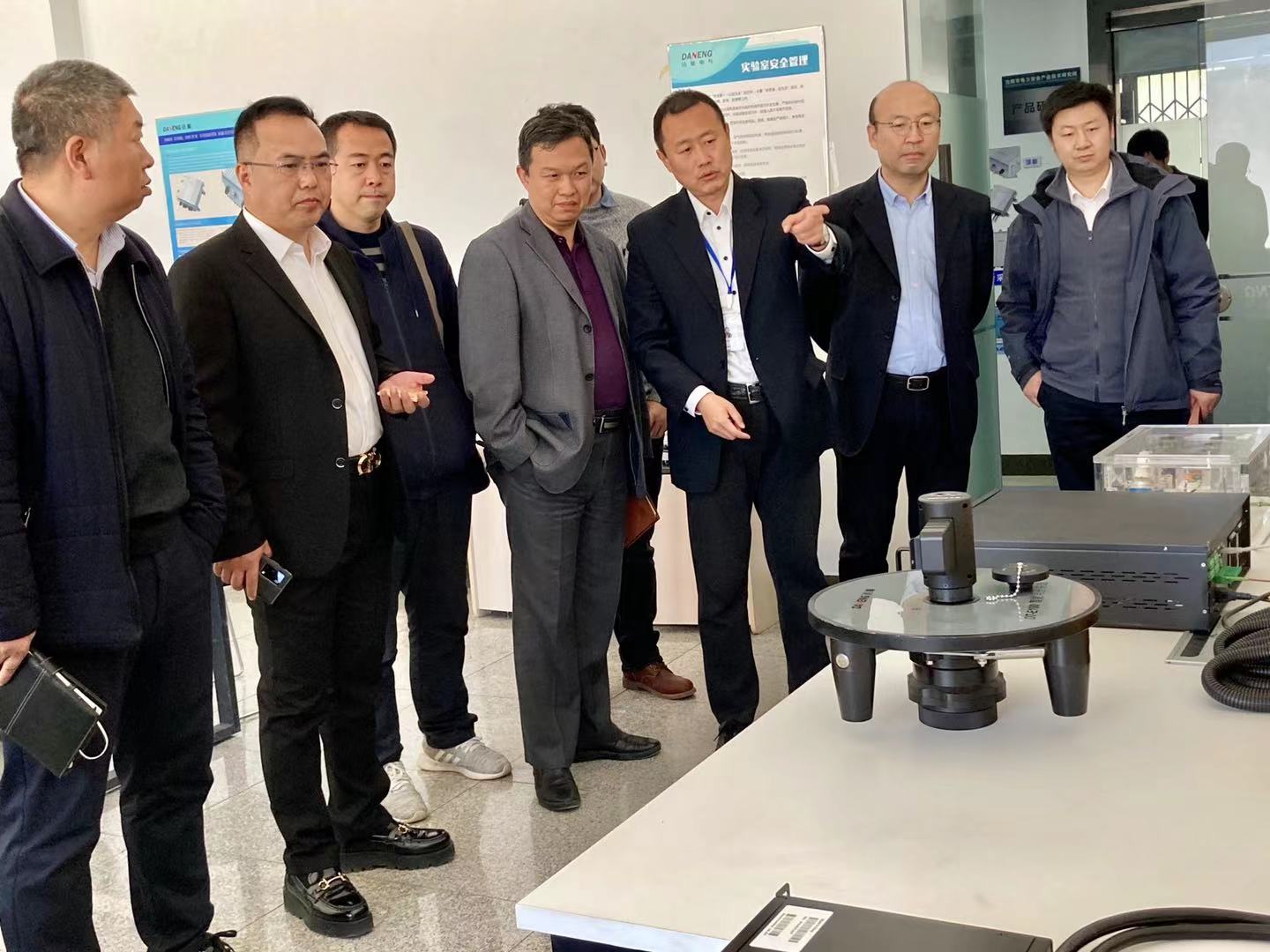 mksport体育电气董事长高艺、总裁关慧明、资本总裁李顺及各部门负责人陪同客人参观mksport体育电安全产业技术研究院各研发室及产品测试区,实地考察研发、生产一线。高总向客人详细介绍了智能电子井盖、分布式光纤测试系统、智能环流接地箱等核心产品。mksport体育电安全产业技术研究院mksport体育电气全资子公司,是专注于电力安全产业技术研究的研发机构,研究院自成立以来立足电力安全前沿技术,充分发挥科研实力,深入开展产学研互动,推动科技成果持续转化,为区域输变配电安全发展贡献力量。