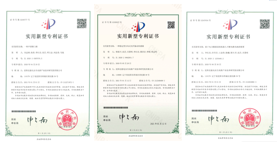 沈阳mksport体育电安全高新产业技术研究院有限公司(以下简称研究院),是mksport体育电气集团旗下专注于电力安全产业技术研究的研发机构。2021年1月份mksport体育研究院累计荣获实用新型专利证书:声屏障类;一种稳定型分布式光纤振动传感器;基于电力隧道巡检机器人的不断电换电池的装置等。mksport体育研究院积极推进行业技术革新迭代,加速科技成果向生产力转化。《一种稳定型分布式光纤振动传感器》聚焦分布式光纤测温系统实际应用情况,可有效提升传感器精度和稳定性。《基于电力隧道巡检机器人的不断电换电池的装置》针对用户换电池影响隧道监测的需求痛点,有效解决问题,提升效率,降低运行风险。mksport体育研究院深度发掘电力需求侧特点,剖析用户案例,开展技术研究,以实际应用为出发点,攻克技术难关,为用户创造价值,助力电力安全关键技术升级。
