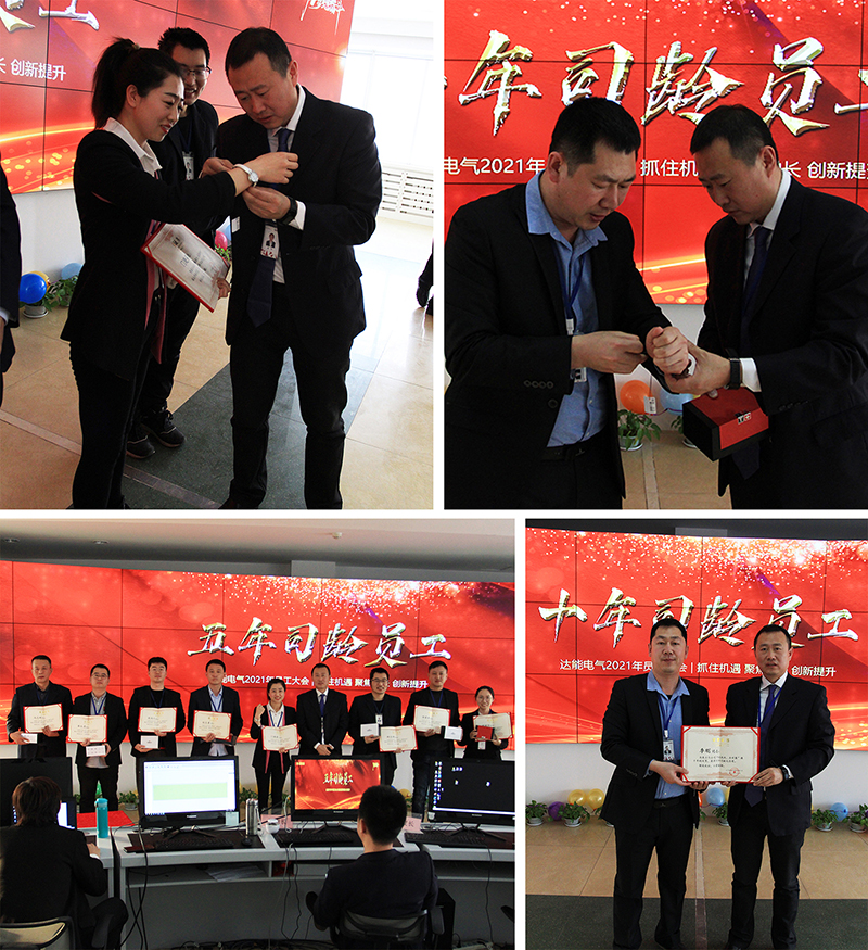 在随后的表彰环节,公司颁发了2020年度优秀员工、销售冠军、突出贡献等奖项,对2020年取得优异成绩的员工给予隆重的表彰和丰厚的奖励。同时,颁发五年司龄及十年司龄员奖项,董事长高艺亲自为五年及十年司龄的各员工“佩戴奖品”—天梭手表。这一代表时间的奖品也诠释了获奖员工用五年及十年为公司的付出与贡献。