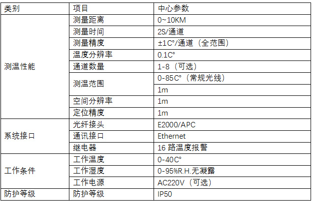 分布式光纤测温主机采用多项国内外领先光电测量技术和光纤技术以及高性能光电器件等高新技术为一体设计。具有测量距离长(最长可达10KM)、响应速度快(最快可达2s/每通道)、测温精度高(0.5℃全范围)等特点,关键技术指标业界领先。